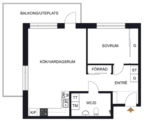 1 rm. apartment of 35 m²