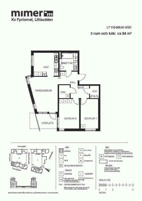 3 rm. apartment of 84 m²