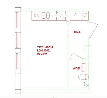 1 rm. apartment of 23 m²