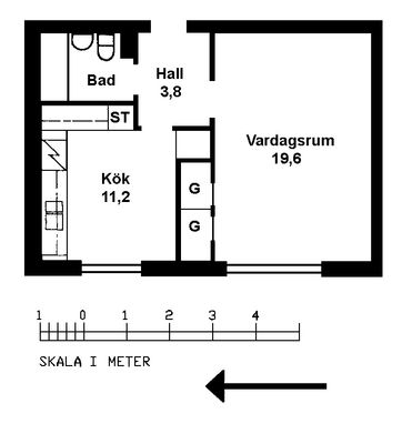 1 rm. apartment of 20 m²