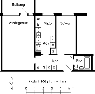 2 rm. apartment of 58 m²