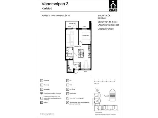 2 rm. apartment of 59 m²