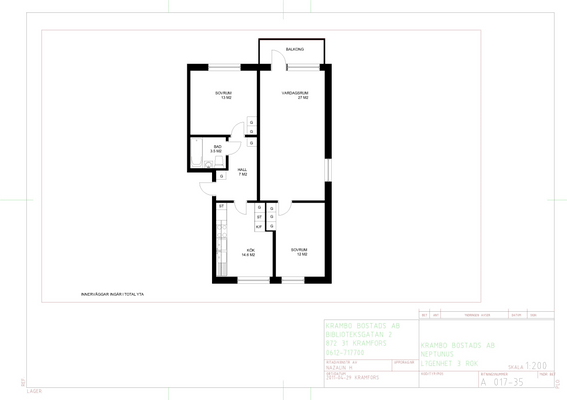 2 rm. apartment of 61 m²