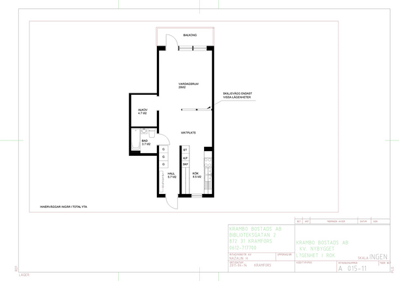 1 rm. apartment of 54 m²
