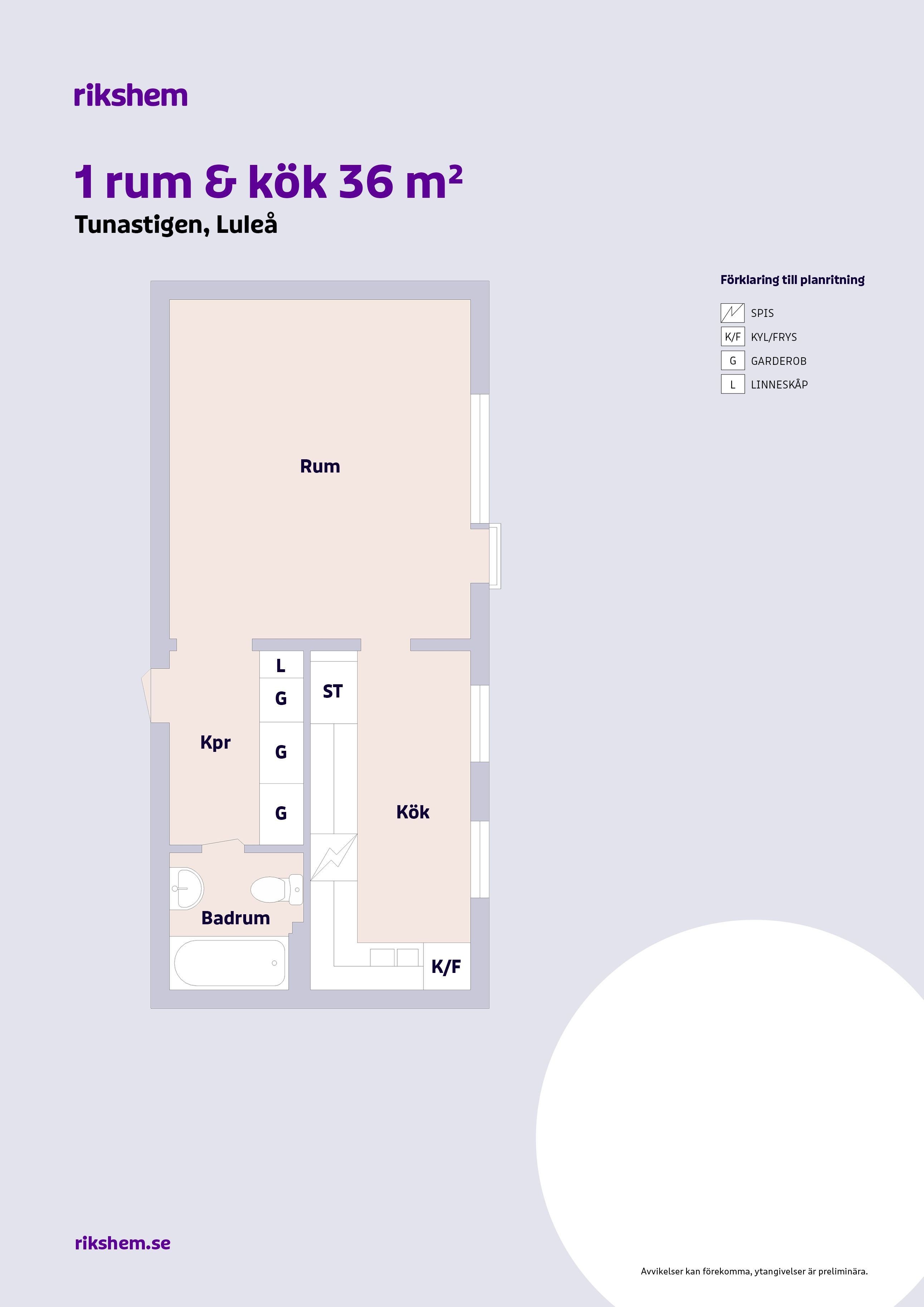 1 rm. apartment of 36 m²
