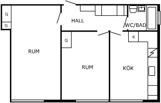 2 rm. apartment of 54 m²