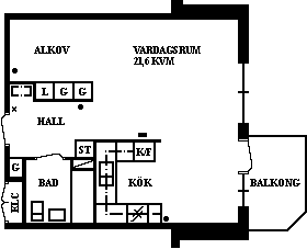 1 rm. apartment of 21 m²