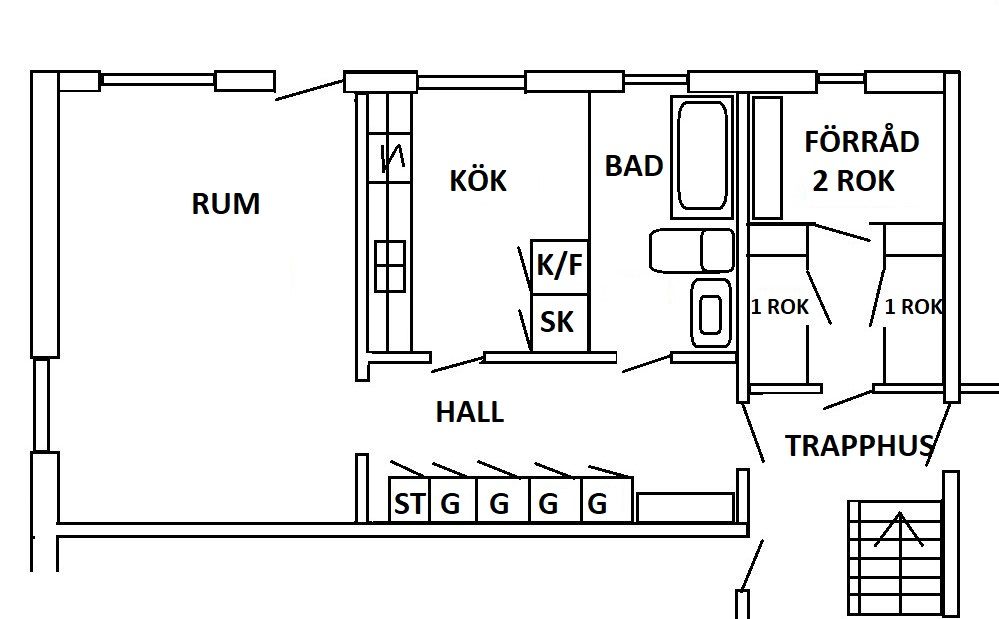 2 rm. apartment of 58 m²