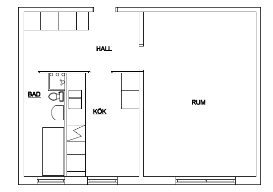 1 rm. apartment of 40 m²