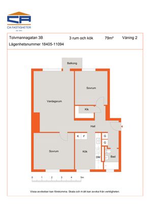3 rm. apartment of 79 m²
