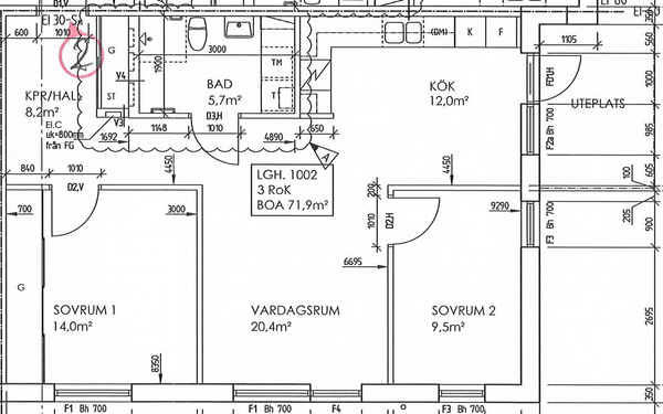 3 rm. apartment of 72 m²