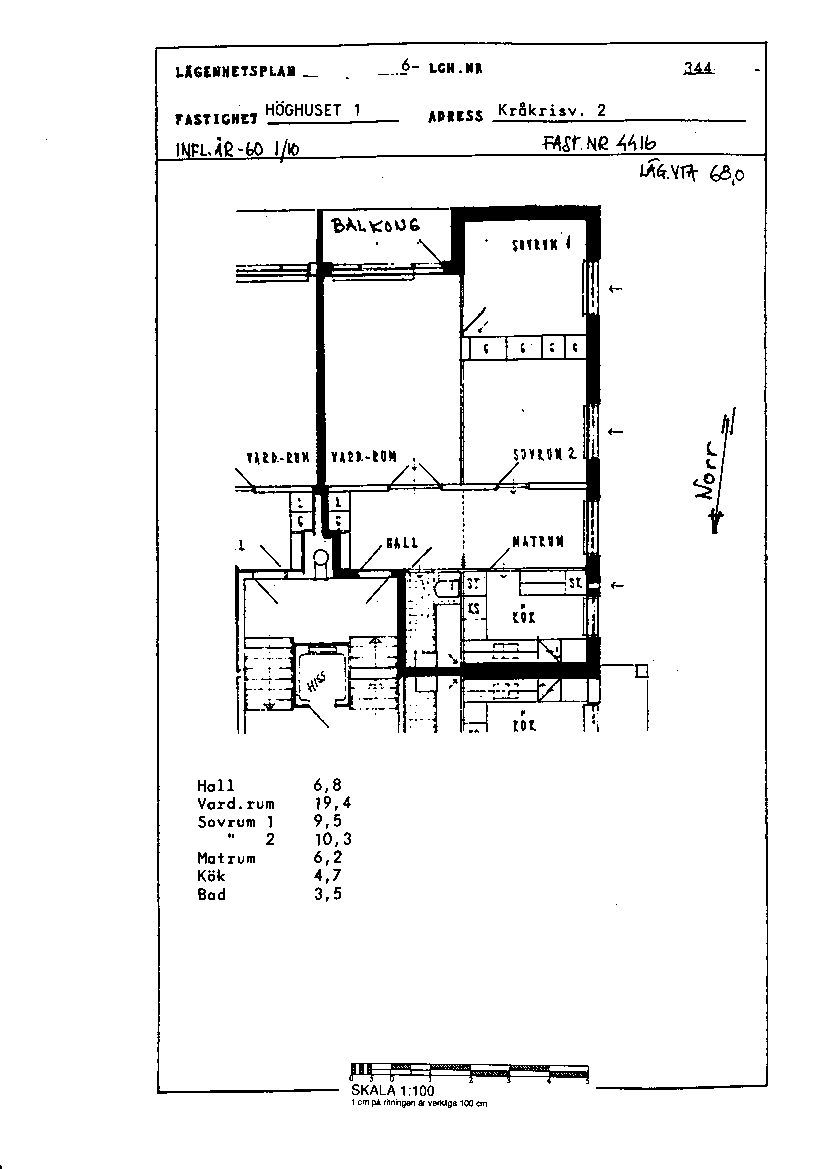 3 rm. apartment of 68 m²