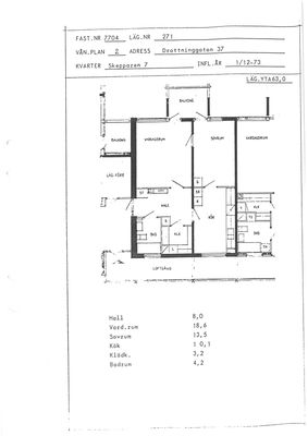 2 rm. apartment of 64 m²
