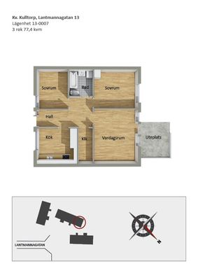 3 rm. apartment of 76 m²