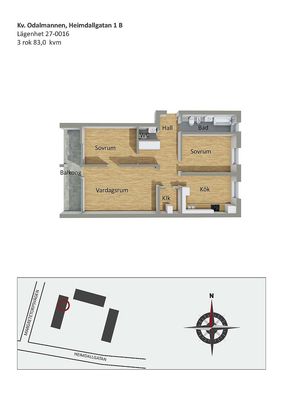 3 rm. apartment of 83 m²