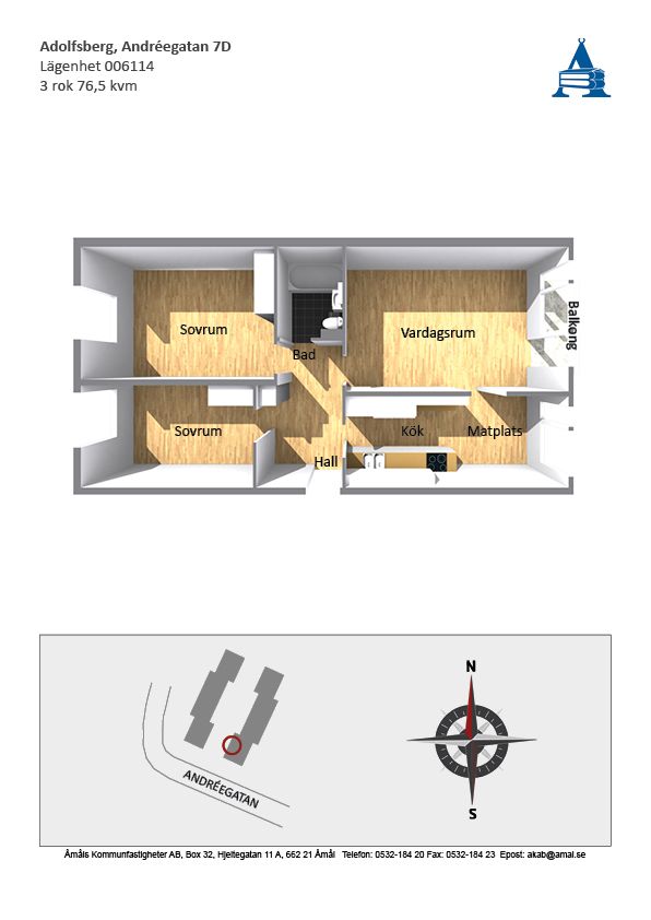 Hyresobjektet ligger på Andréegatan, det har 3 rum och kök. Samlad storlek för hyresobjektet är 76 kvm och är tillgänglig från och med idag. Hyran är 8108 kr.