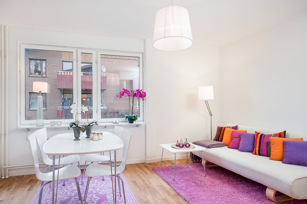 Lägenheten är målad i ljus färg och är utrustad med ekparkett i rummet och klinkergolv i hallen.