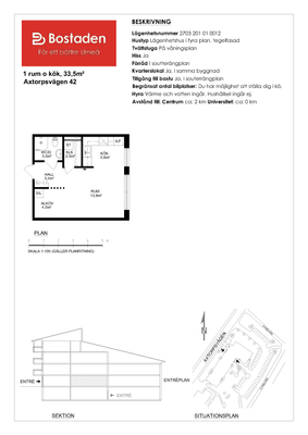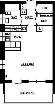 1 rm. apartment of 34 m²