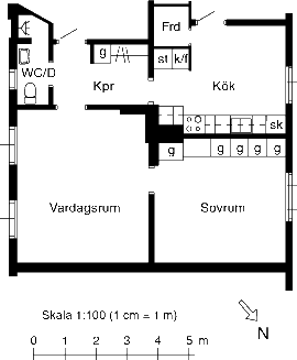 2 rm. apartment of 56 m²