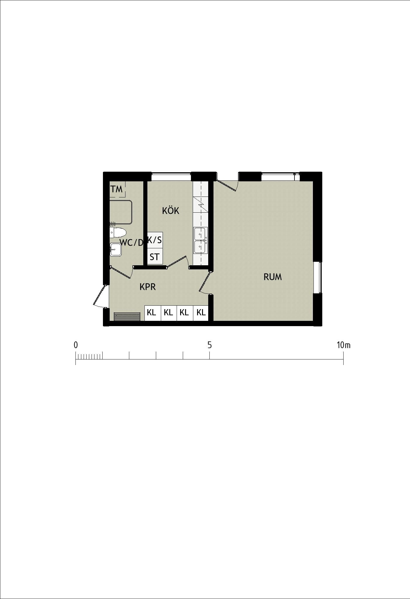 1 rm. apartment of 34 m²
