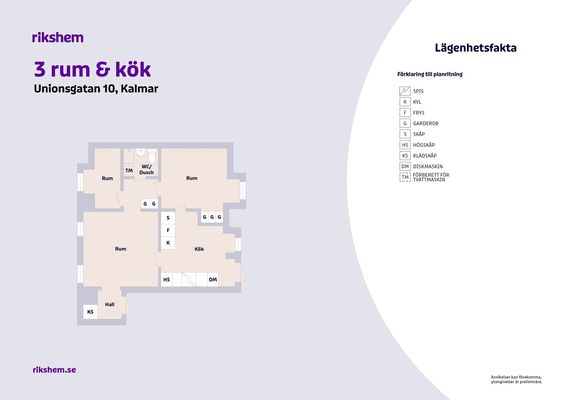 3 rm. apartment of 65 m²