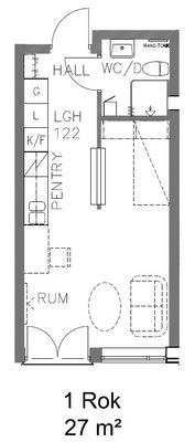 1 rm. apartment of 27 m²