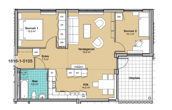 2 rm. apartment of 68 m²