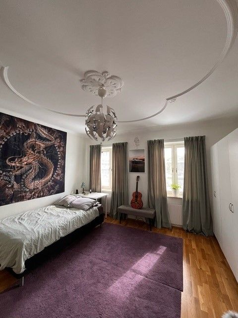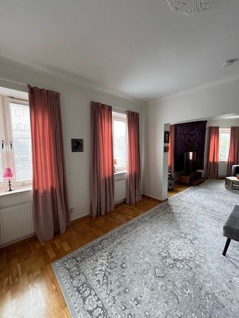 Du stiger in i en generös och luftig tvåa som blev totalrenoverad 2022 på tredje våningen. Hiss finns i fastigheten. Lägenheten är utrustad med diskmaskin, mikro och tvättpelare. Ej balkong. Ett stort smakfullt HTH kök med rostfria vitvaror inbjuder till långa middagar med vänner. Det finns skjutdörrsgarderober i hall och sovrummet. Parkettgolv i rummen. Hyresförhandlingar för 2026 pågår.