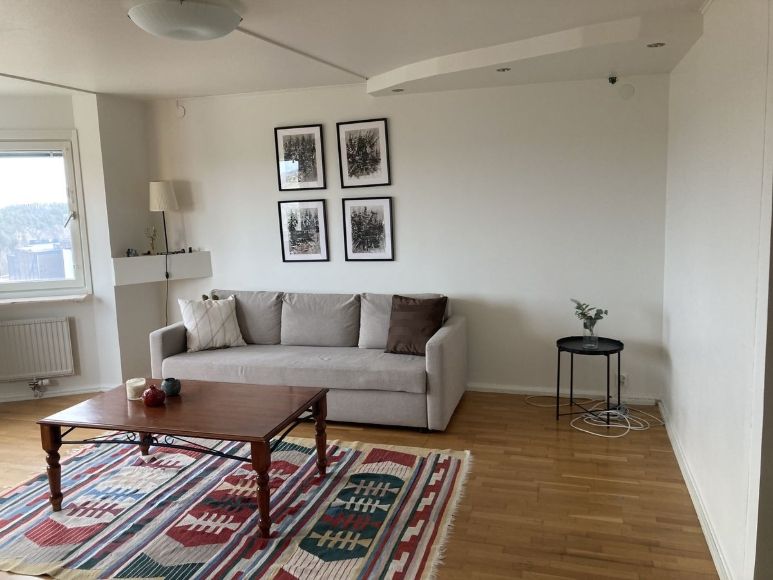 Om bostaden Välplanerad och ljus 2-rumslägenhet om 71 m², belägen i ett grönskande och lugnt område i Flemingsberg. Lägenheten hyrs ut möblerad, och el samt internet ingår i hyran, vilket underlättar för dig som hyresgäst. Interiör och egenskaper • Stort sovrum med dubbel­säng (inklusive inbyggda lådor under sängen), rymlig garderob och extra förvaringsmöjligheter. • Stort och ljust vardagsrum med bra planlösning och fin utsikt mot grönområden och delar av Stockholm. • Balkong med utsikt mot park, heltäckningsmatta och soffa – perfekt för sena kvällar eller lugna frukostar. • Hall med specialbyggd garderob som fungerar som extra förvaringsutrymme. • Badrum med badrumsskåp och gott om yta. • Separat förråd inne i lägenheten. • Gemensam tvättstuga finns i huset. Läge och kommunikationer Lägenheten är strategiskt placerad med kort avstånd till viktiga destinationer: • 2 min promenad till Södertörns högskola • 5 min promenad till Karolinska Universitetssjukhuset • 6 min till Pendeltågsstationen • Cirka 19 min med pendeltåg till Stockholm City • 2 min med pendeltåg till Huddinge centrum I närområdet finns även mataffärer, caféer, restauranger och service (t.ex. Lidl, ICA och Willys). Fina promenadstråk och grönområden ligger direkt utanför dörren.