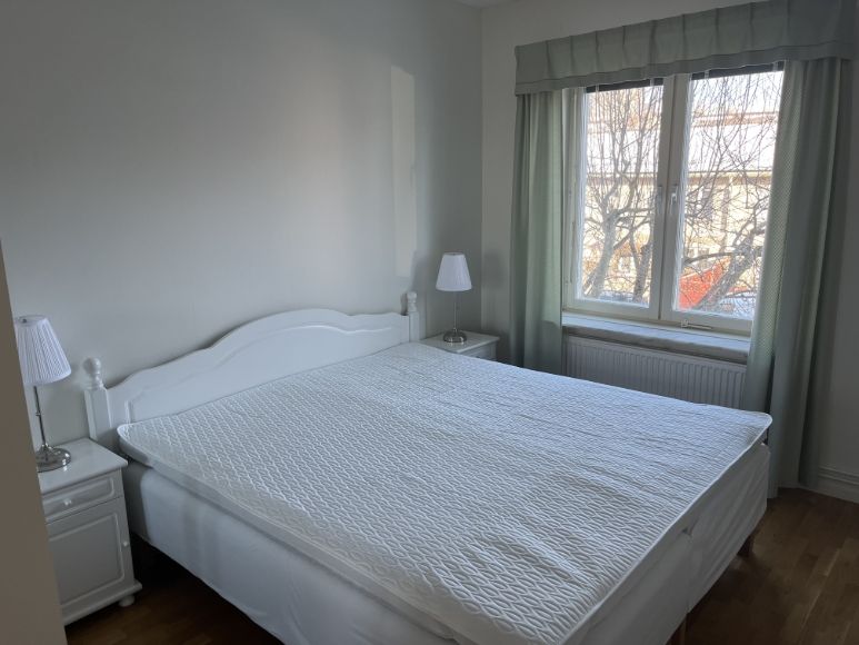 Det finns två väl tilltagna sovrum, vilket gör lägenheten lämplig för ett par, en liten familj eller yrkesverksamma som behöver ett hemmakontor. Lägenheten är fullt möblerad, vilket gör att du kan flytta in direkt utan att behöva ta med egna möbler.