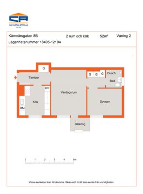 2 rm. apartment of 52 m²