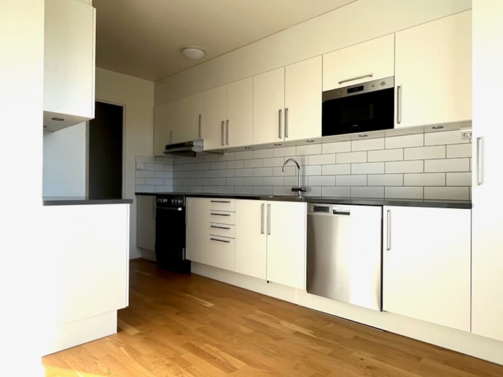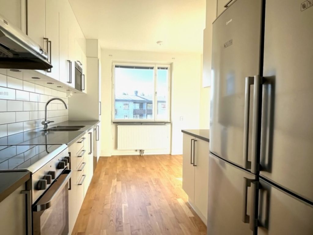 Interiörbilderna är från den verkliga lägenheten. ### Visning * * * Är du intresserad av visning? Vi erbjuder visning även kvällar och helger. Anmäl dig här Hyresrabatt För dig som är ny kund erbjuder vi just nu en hyresrabatt på 3000 kronor i månaden under första två åren och 2000 kronor i månaden under tredje året. Därefter gäller ordinarie hyra vilket i dagsläget är 11 425 kr/månad. Om lägenheten Välkommen till denna charmiga och ljusa 3-rumslägenhet med kök belägen på tredje våningen i hjärtat av det populära området Norr i Katrineholm. Med en yta på 80 kvadratmeter erbjuder denna lägenhet gott om plats för vardagslivet. Här är gott om naturligt ljus och ger en härlig atmosfär. Lägenheten har en optimal planlösning som skapar en trivsam och funktionell boendemiljö. Ett perfekt hem för den som söker bekvämt boende i ett lugn och trevlig kvarter. Området Fastigheterna i kvarteret Apeln 5 uppfördes år 1970 och är ett väl placerat fastighetsområde som är beläget mitt emellan Katrineholms centrum/resecentrum och Lövåsens handels, logistik och köpcentrum. Byggnaden består av 54 antal lägenheter i storleken 1-3 rum och kök. Hiss finns endast i port D, i övriga trapphus är hiss inte installerade