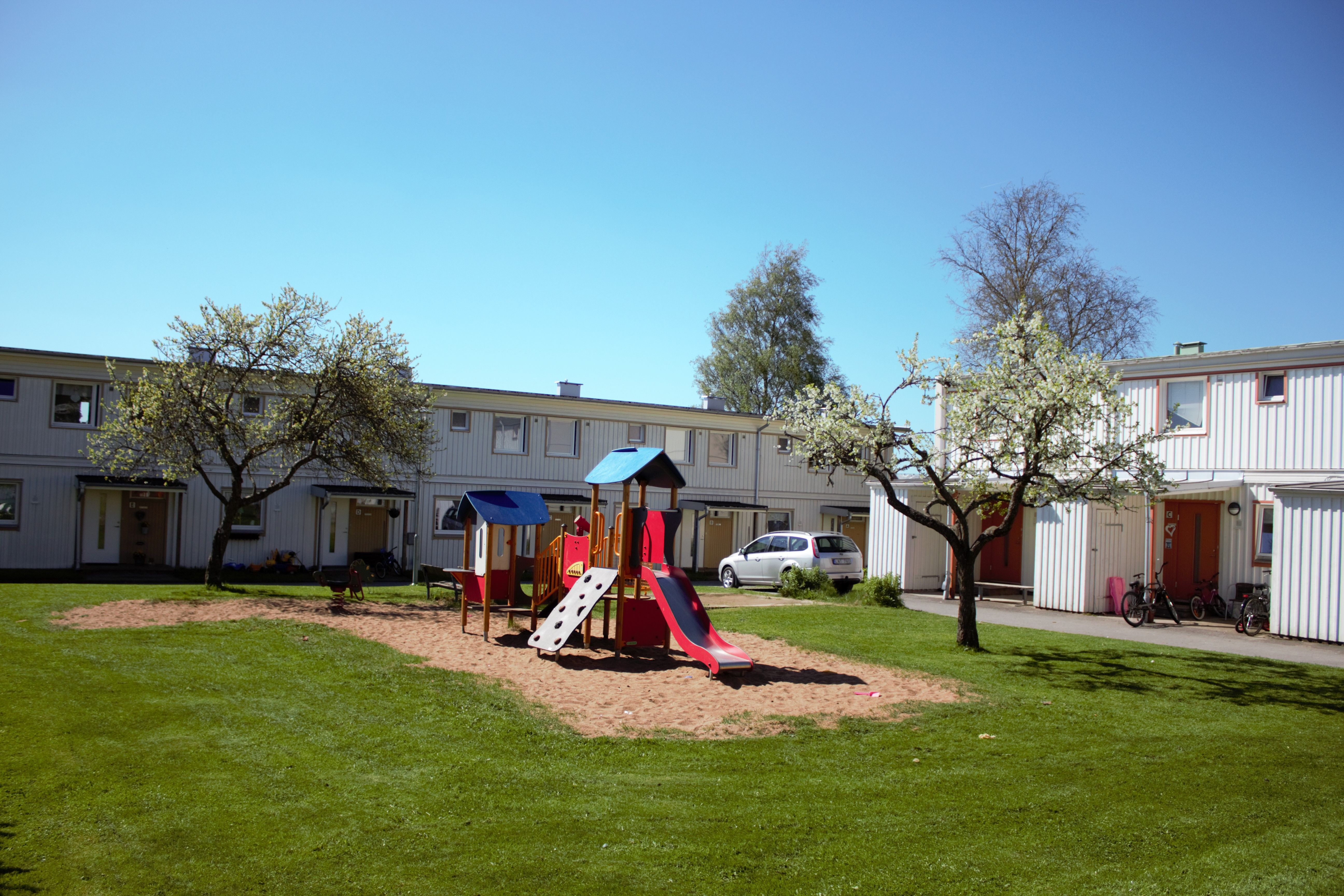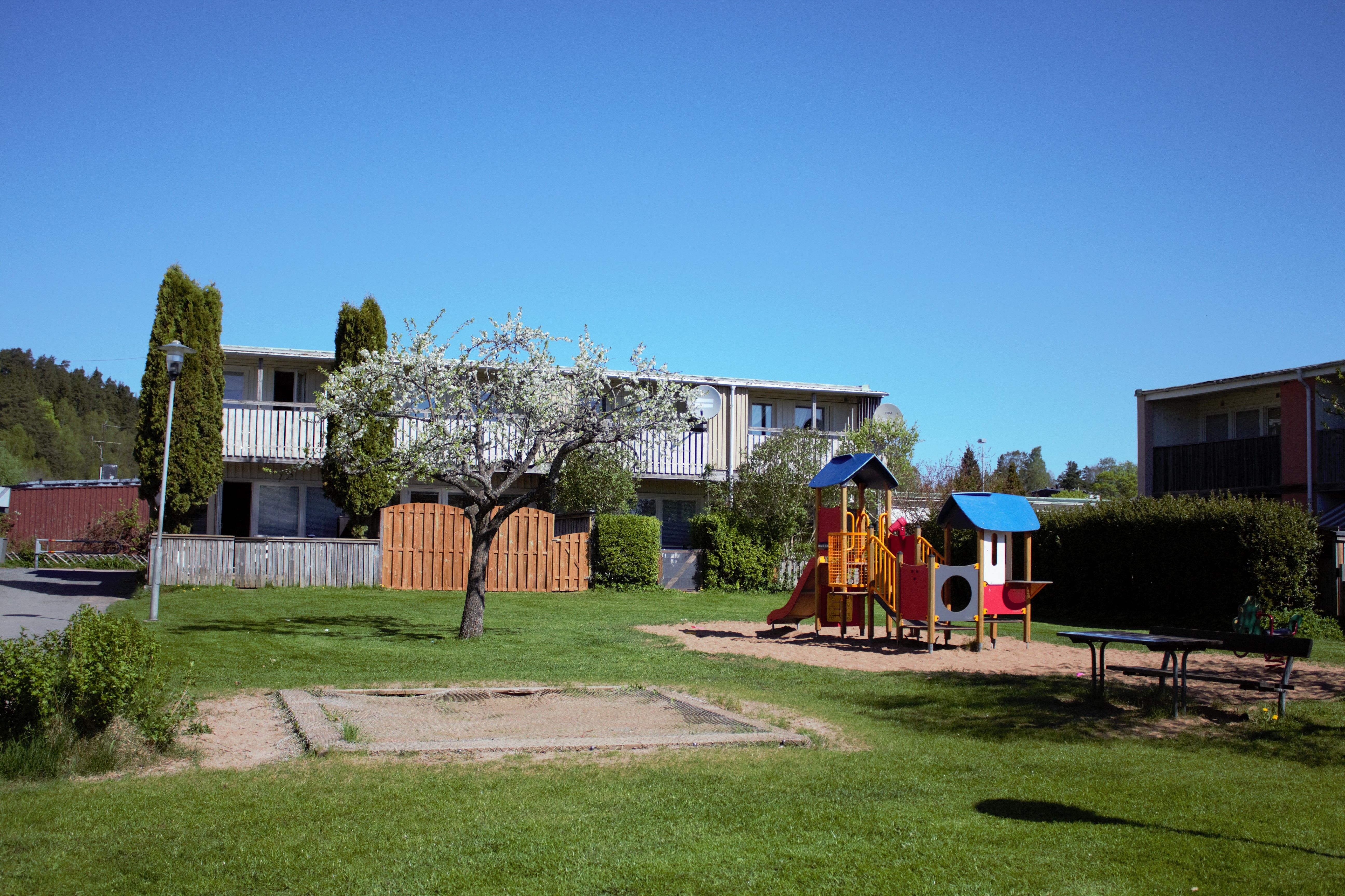 Området Snickaren består av 11 hus som tillsammans rymmer cirka 300 lägenheter. Snickaren är uppdelat på tre gårdar där du på varje gård hittar en miljötvättstuga och stora ytor att umgås på. Här finns ettor, tvåor och treor och Snickaren passar därför bra både för ensamhushållet och barnfamiljen. Du har också Kinna centrums utbud av service på bara en kilometers avstånd. Denna rymliga trea erbjuder en balkong för avkoppling och har diskmaskin för ökad komfort i vardagen. På innergården, i markplan, finns en miljötvättstuga .