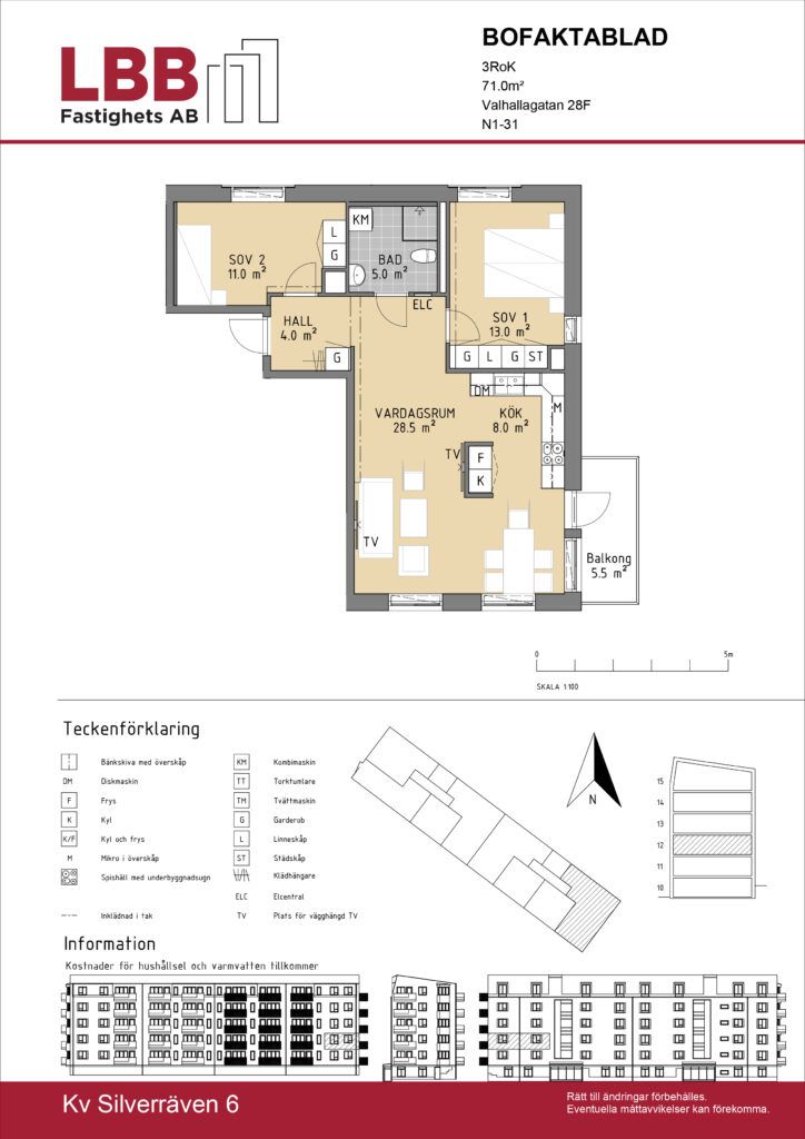 3 rm. apartment of 71 m²