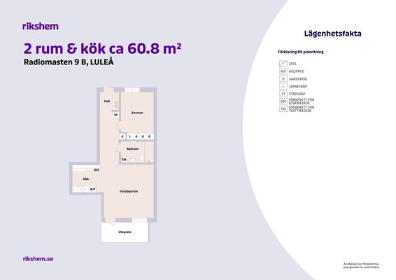 I våra lägenheter på Tunastigen får du ett modernt boende med genomgående vitmålade väggar och ekparkettgolv. Till bostaden finns bekvämligheter som tvättstuga och bastu med elektronisk/internetbokning samt tillgång till barnvagnsrum på gården. Lägenheten renoverades 2021. Lägenheten består av: Rymlig hall med hatthylla och plats för mindre möblemang. Kök med vitmålade väggar, vitt kakel, vita köksluckor, grå/svart bänkskiva samt ekparkettgolv. Köket är utrustat med kyl/frys och spis med induktionshäll, inbyggnadsugn och diskmaskin. Badrum med vitt kakel och svarta klinkers. Badrummet är utrustat med wc, spegel, tvättställ med underskåp samt duschvägg i glas. Handdukstork och elektrisk golvvärme finns installerat. Sovrum med plats för säng, garderober och annat möblemang. Vardagsrum med fint ljusinsläpp. Ingår inget lägenhetsförråd. Bostaden är utrustad med säkerhetsdörr. I månadshyran ingår värme och vatten. Hushållsel tillkommer. Hemförsäkring samt eventuellt internetabonnemang tecknas av kunden. Här finns möjlighet att hyra p-plats/ garage och extra förråd. I dagsläget har vi begränsat antal p-platser/ garage. Bilderna på lägenheten är exempelbilder för att visa inredning och materialval. De allra flesta kontrakt skrivs från och med den 1:a i en månad, vilket innebär att du kan flytta in tidigast klockan 12.00 den dagen. Om ditt kontrakt börjar gälla en röd dag (lördag, söndag, helgdag, midsommarafton, julafton eller nyårsafton) gäller enligt hyreslagen, första vardagen därefter kl