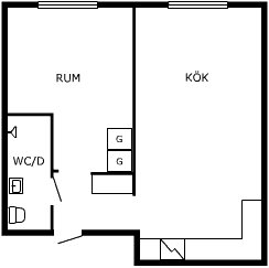 1 rm. apartment of 26 m²