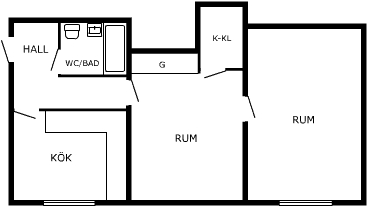 2 Rum och Kök med matplats Möbler ingår ej