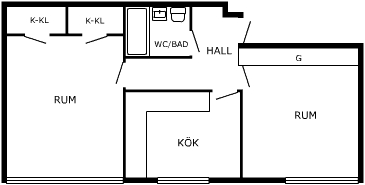 2 Rum och Kök med matplats Möbler ingår ej