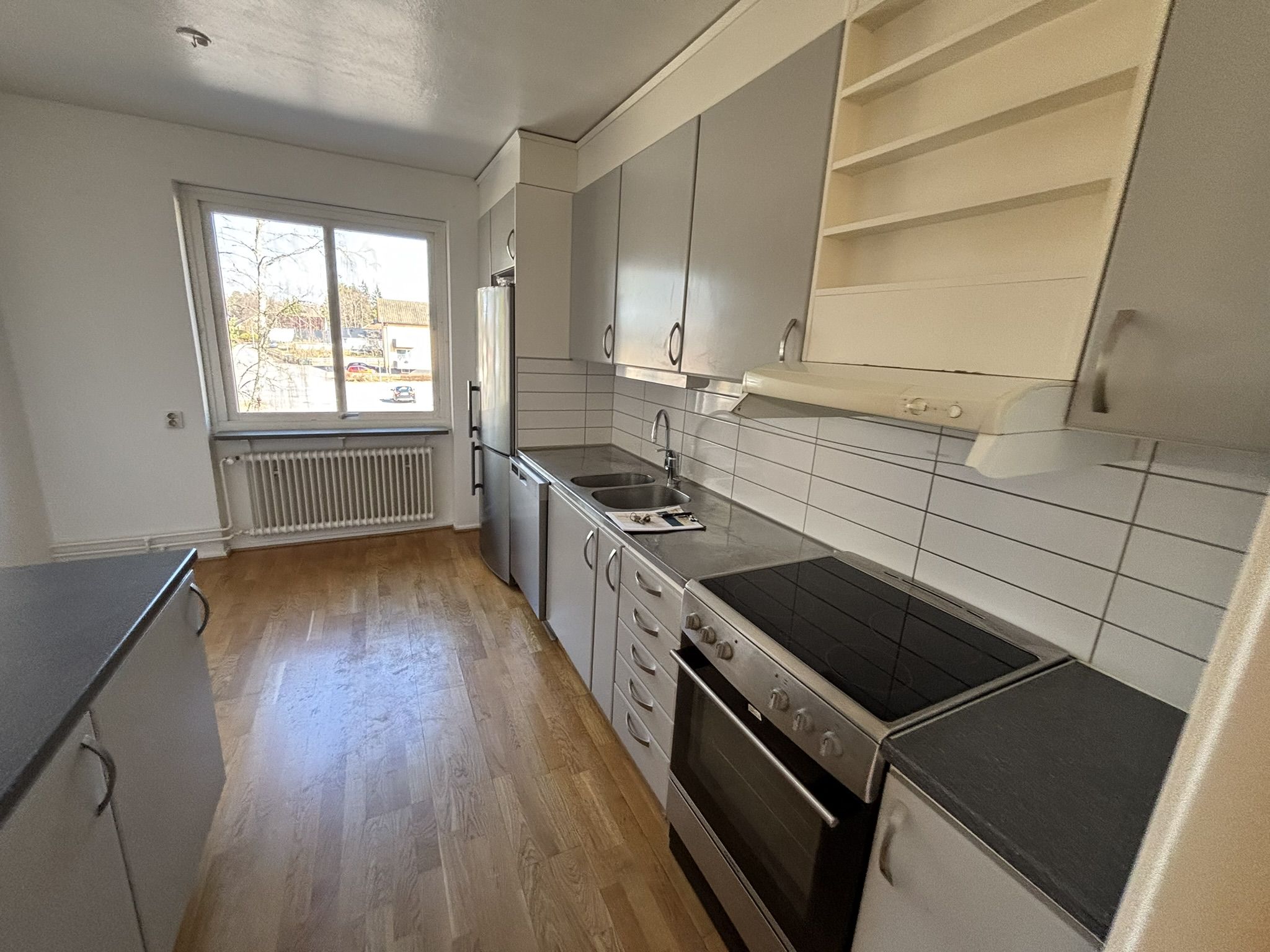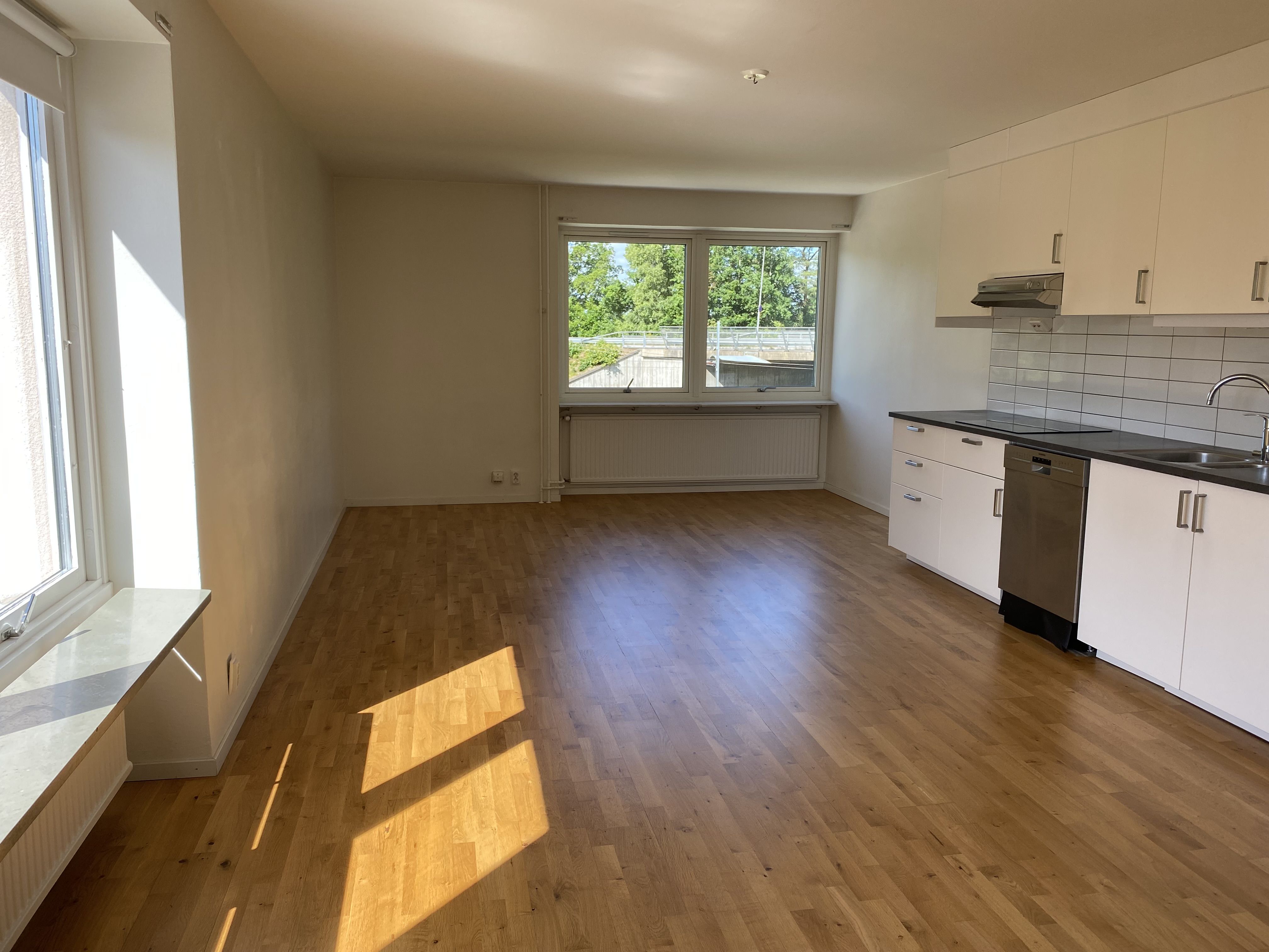 Interiörbilderna är exempelbilder på standarden ### Visning * * * Är du intresserad av en visning? Vi erbjuder även visning kvällar och helger. Anmäl dig här Om lägenheten Välkommen till denna fina trea på Västergatan som är utrustad med moderna bekvämligheter för en smidigare vardag. Här har du ett modernt kök med rostfria vitvaror, diskmaskin samt inbyggd ugn & mikro. Badrummet har vitt kakel på väggarna, grå plastamatta och erbjuder både tvättmaskin och torktumlare. För övrigt har lägenheten genomgående vitmålade väggar, fint parkettgolv och goda förvaringsmöjligheter. Här bor du på våning 1 och har en balkong i västerläge, hiss finns inte. Området Lägenheten ligger endast en kort promenad från centrum där du har bekvämligheter såsom butiker, restauranger, bibliotek, skola, kollektivtrafik och mycket mer