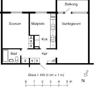 2 rm. apartment of 59 m²