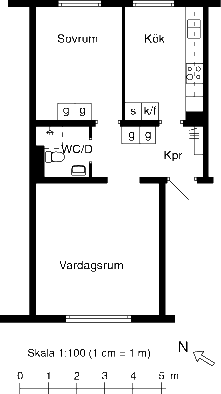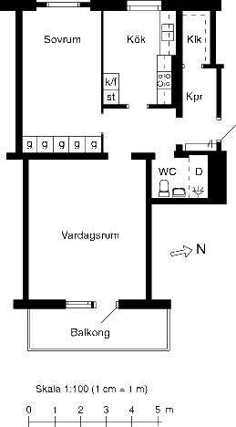 2 rm. apartment of 61 m²