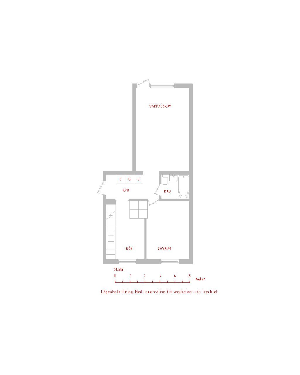 2 rm. apartment of 58 m²