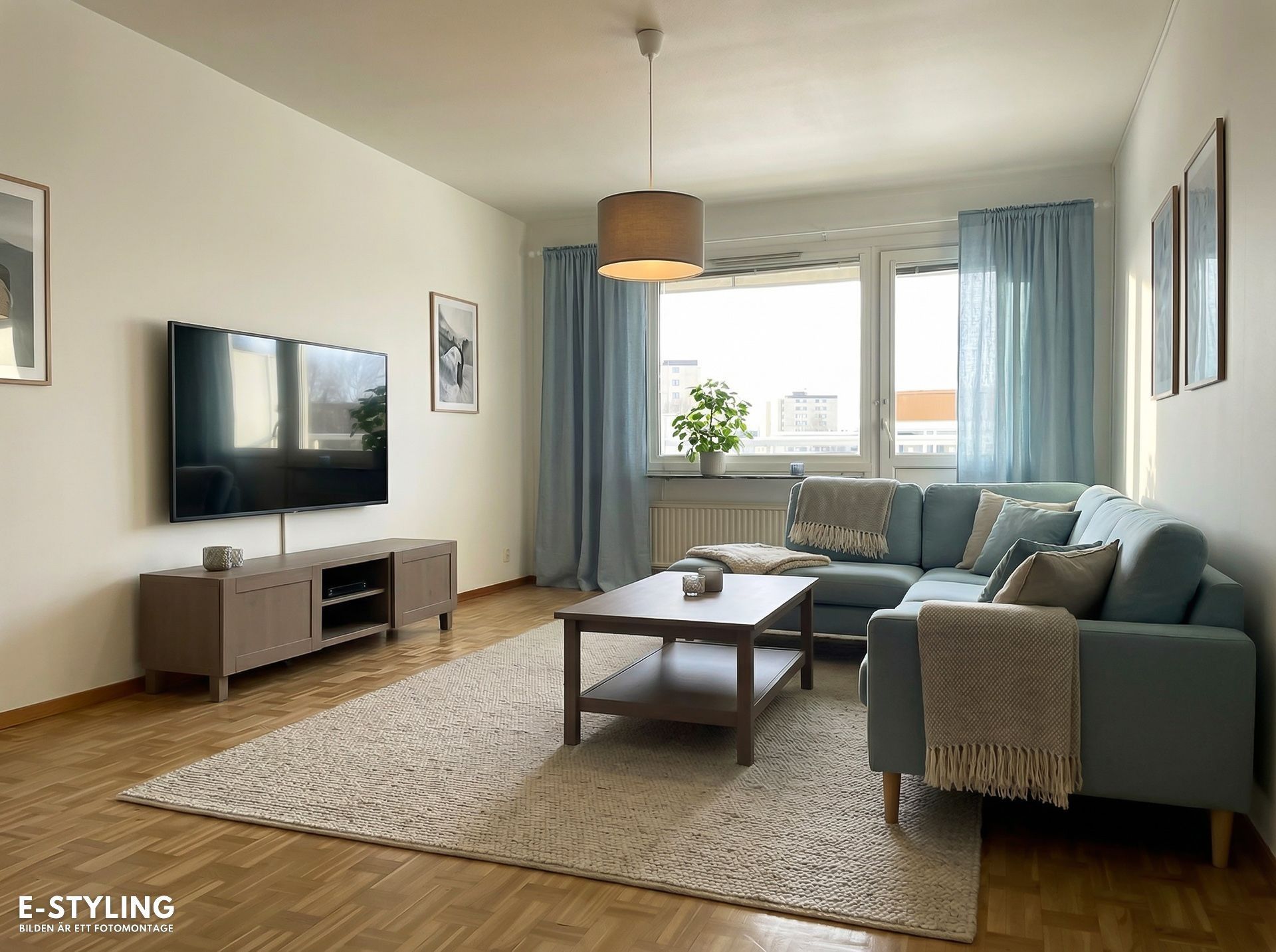 Vardagsrummet erbjuder gott om utrymme för soffhörna och annan möblering. Från vardagsrummet når du balkongen som vetter mot innergården med ett trevligt solläge.