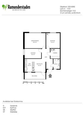 3 rm. apartment of 83 m²