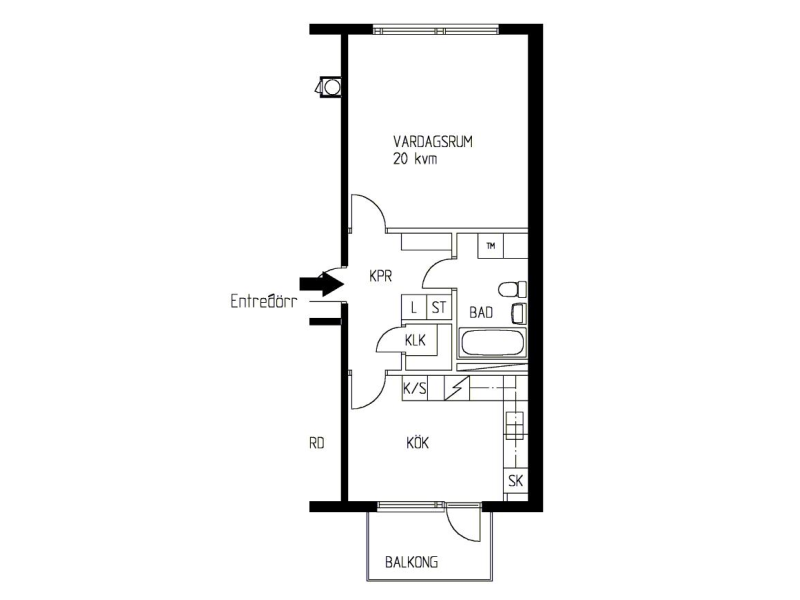 1 rm. apartment of 24 m²