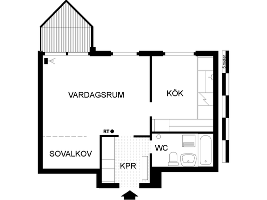 1 rm. apartment of 32 m²