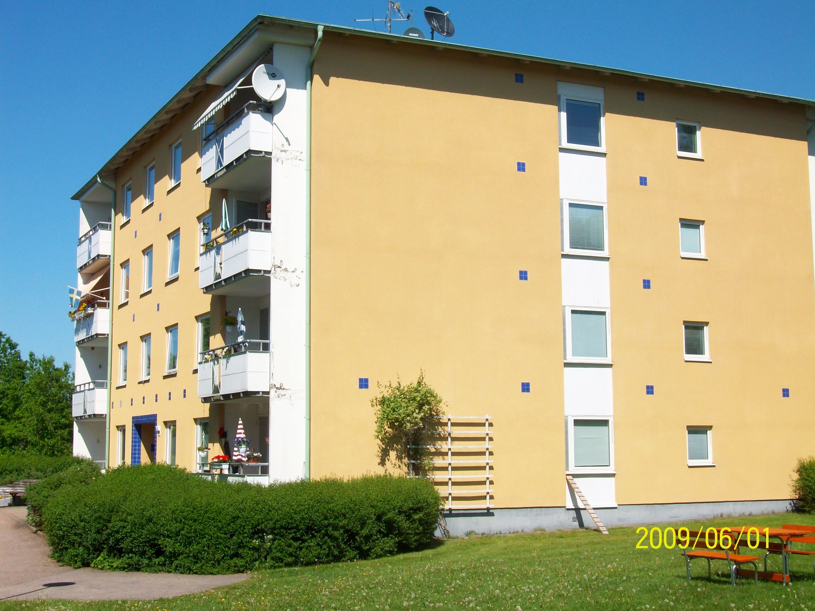 Interiörbilderna är exempelbilder på standarden ### Visning * * * Är du intresserad av en visning? Vi erbjuder även visning kvällar och helger Anmäl dig här Om lägenheten Välkommen till denna ljusa 2 rum och kök med balkong. Lägenheten är delrenoverad och har ett fint badrum med helkaklade väggar, grå plastmatta och är utrustat med dusch. Köket är praktiskt och utrustat med vita skåpsluckor, bra förvaringsmöjligheter samt plats för en matgrupp. Vardagsrummet är försett med parkettgolv i ek och där når du även den härliga balkongen. Lägenheten är belägen på plan 2/3, hiss finns ej i fastigheten. Området Lägenheten ligger i ett lugnt och trivsamt område. Från fastigheten är det en kort promenad till centrum med dess utbud av livsmedelsaffär och dylikt. Skolan ligger även på gångavstånd. Detta boende passar perfekt för dig som ska flytta hemifrån