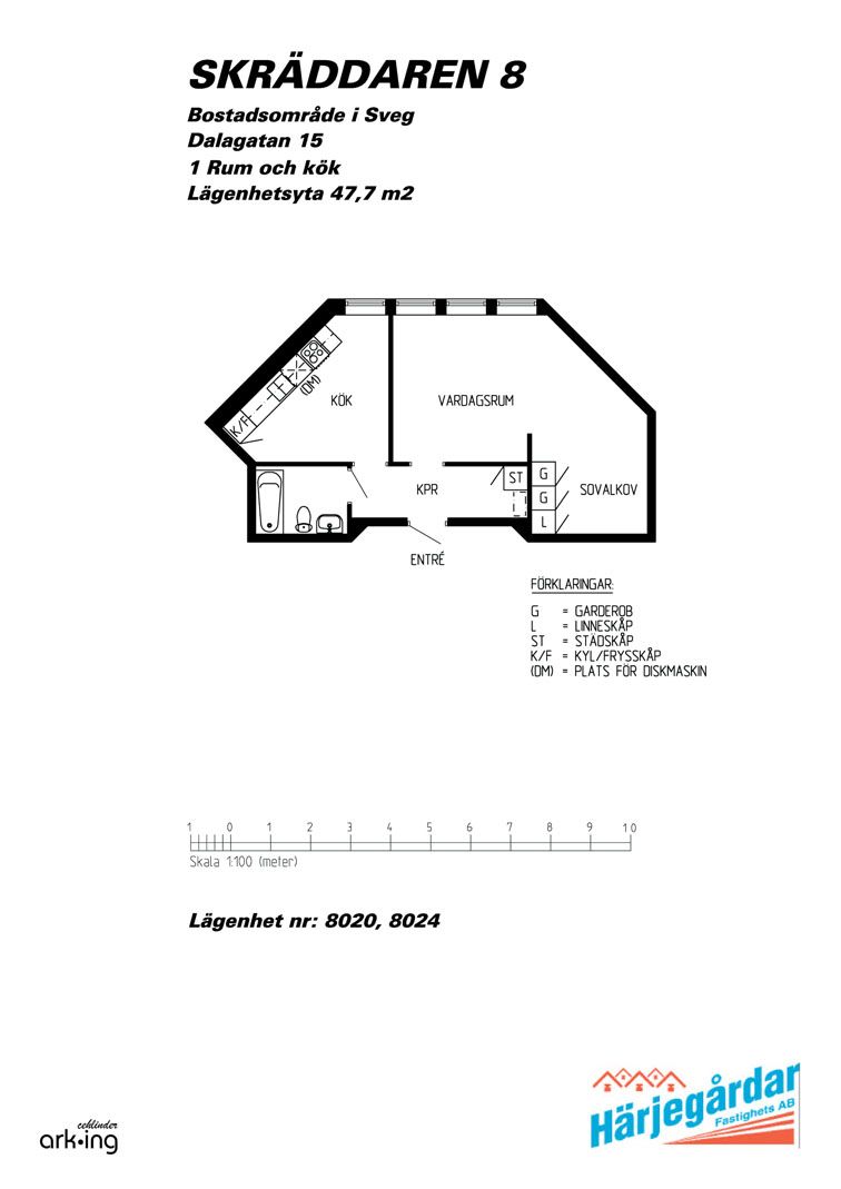 2 rm. apartment of 64 m²