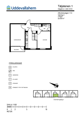 2 rm. apartment of 59 m²