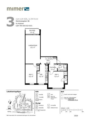 3 rm. apartment of 84 m²